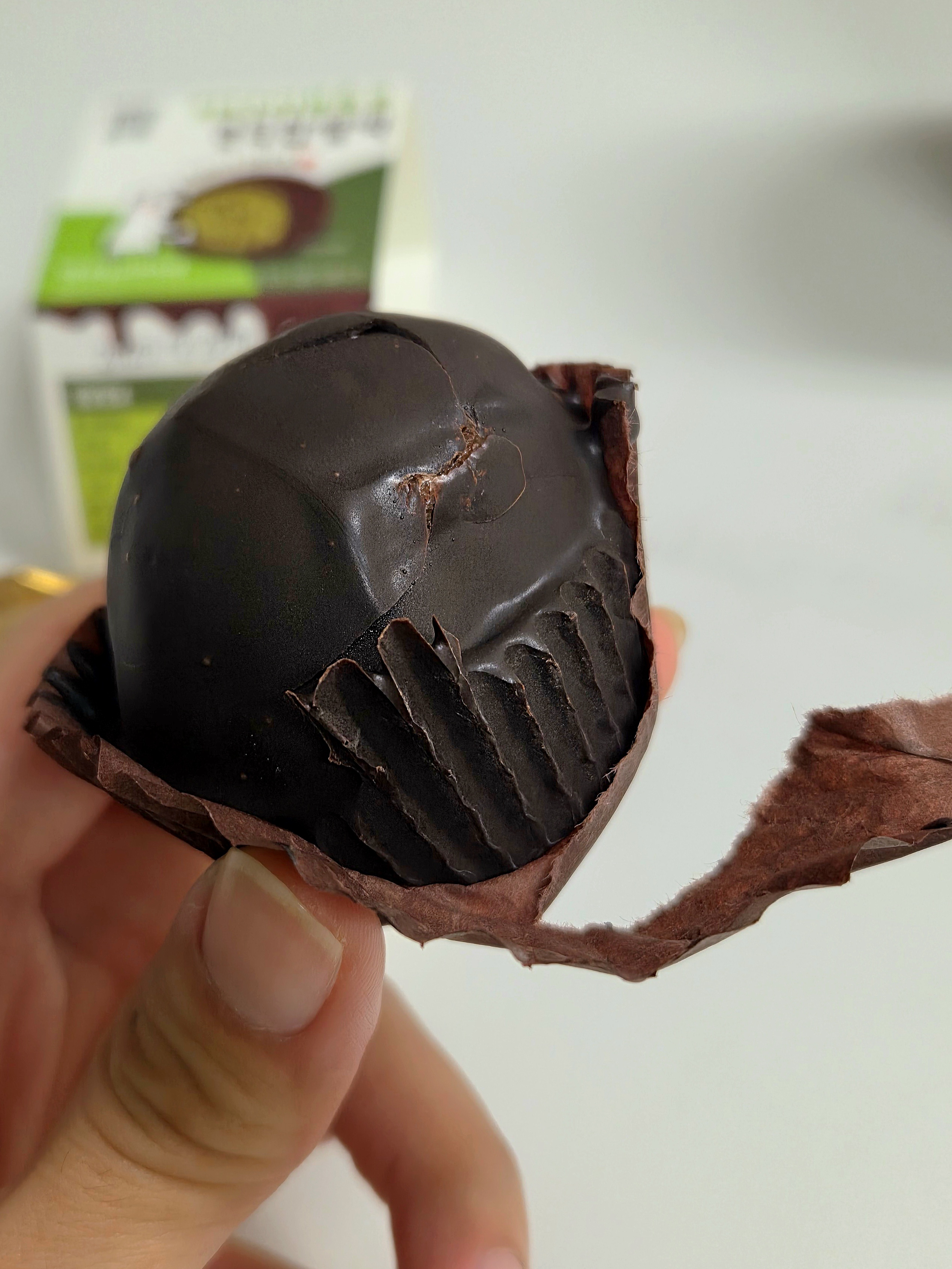초콜릿이 한 번 녹았다가 얼었나? 싶을 정도로 종이에 붙어있는데,